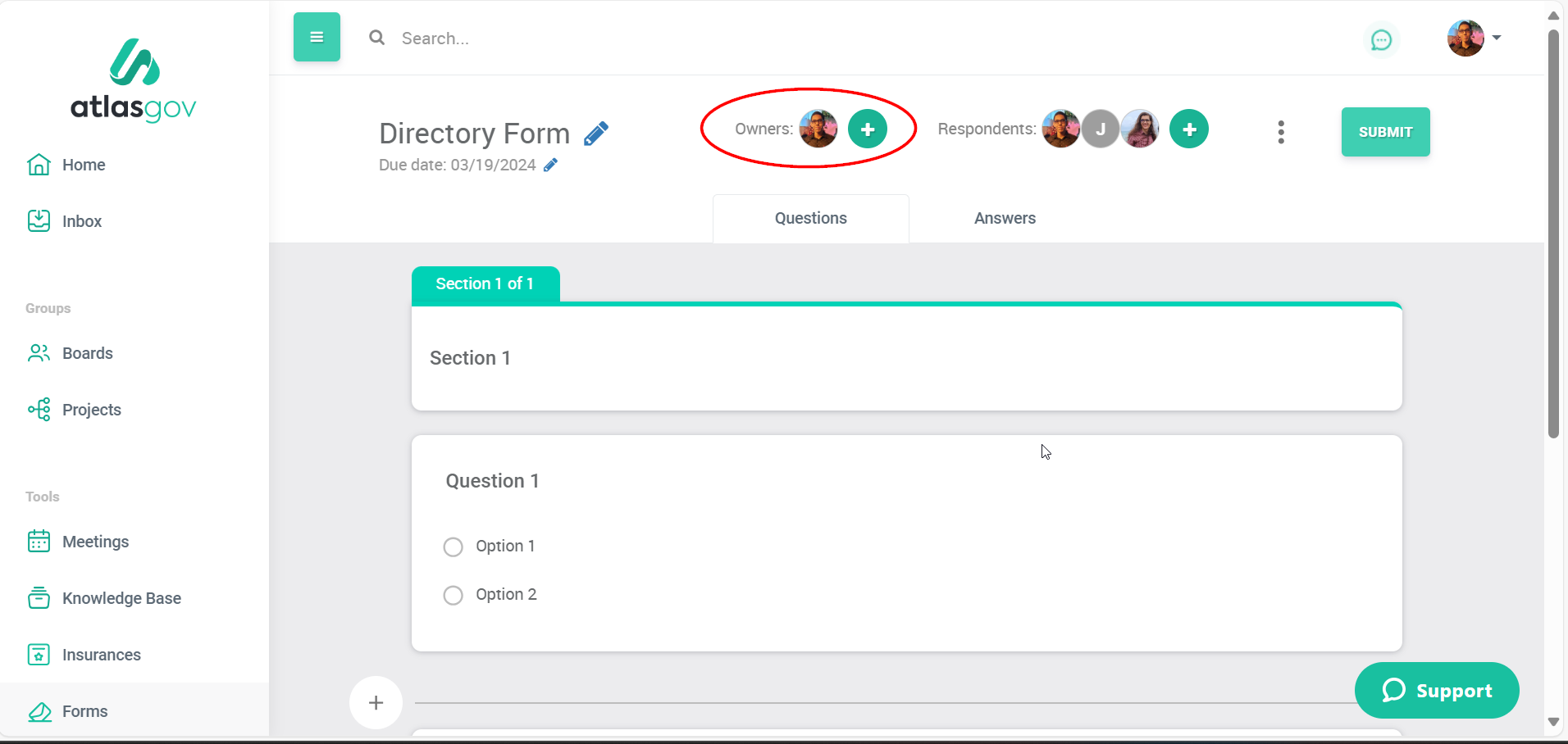 To add more owners to the form, follow the steps below: