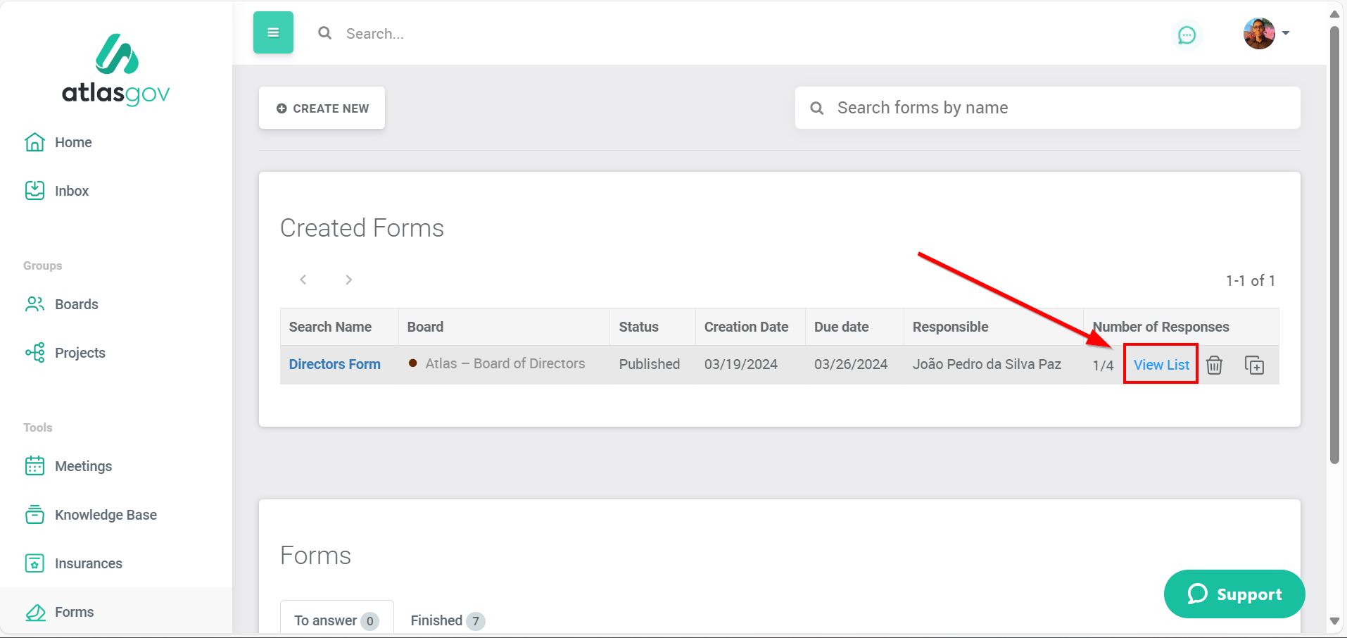 - In the “Forms” tab, hover over the form you want to resend and click on “View List”;