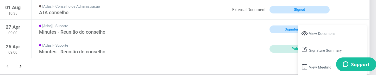 - View Meeting: Allows you to access the details of the meeting in which the minutes were discussed.
