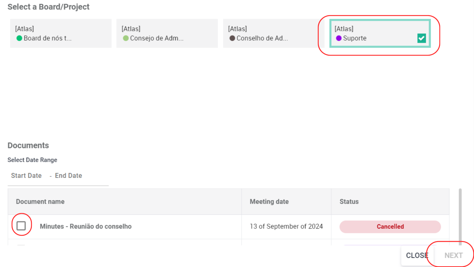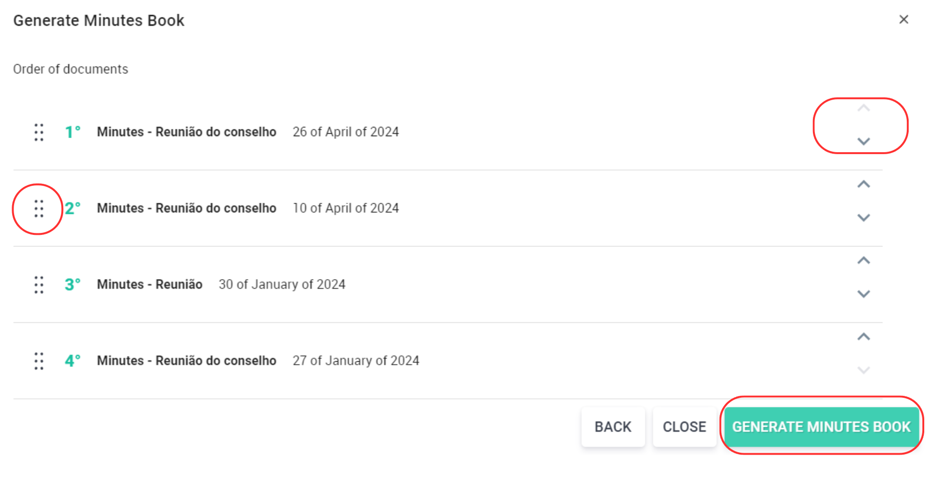 - Select the order of the documents manually, using up/down arrows or dragging them.