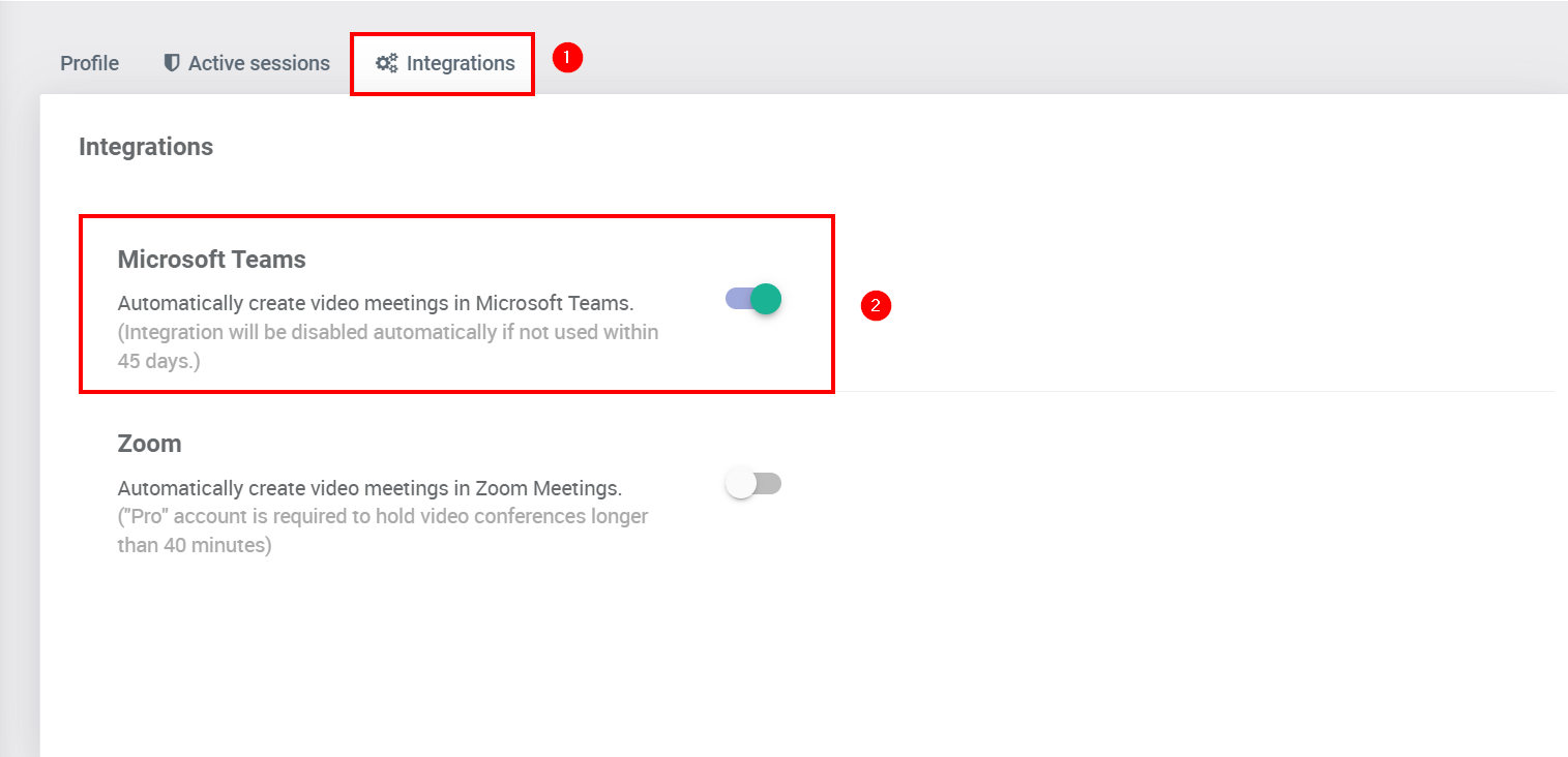 - Enable the “Microsoft Teams” option.