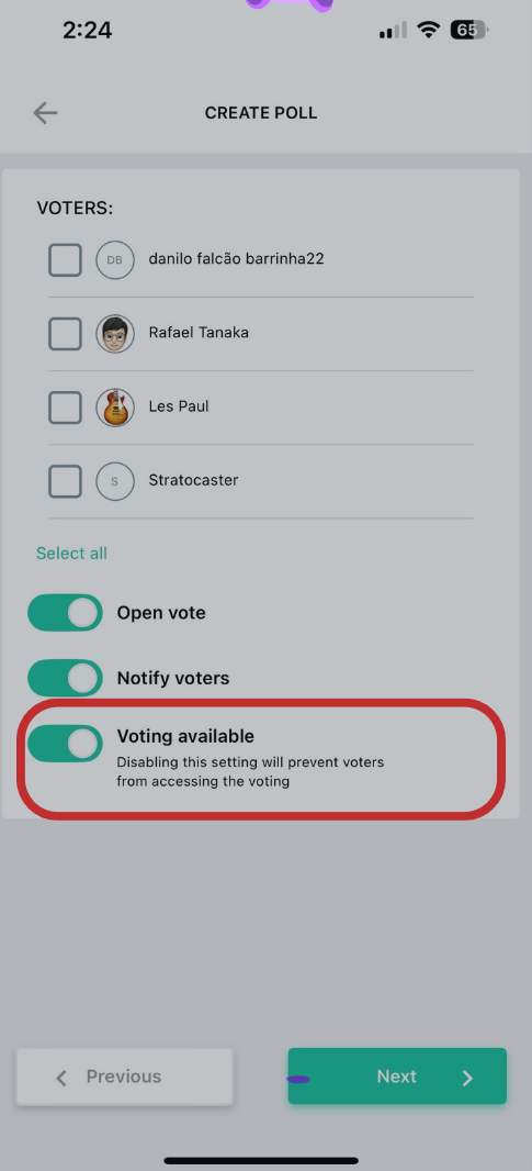 - NEW: In the poll settings, you can enable or disable the poll’s availability, allowing you to control when it will be accessible to voters.