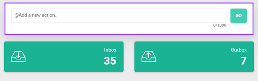 - In "Home” click on "Add a new action"and the portal will throw automatically "@" with the list of users that you could mention.