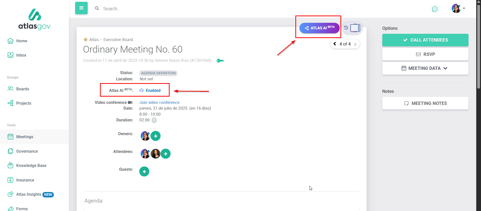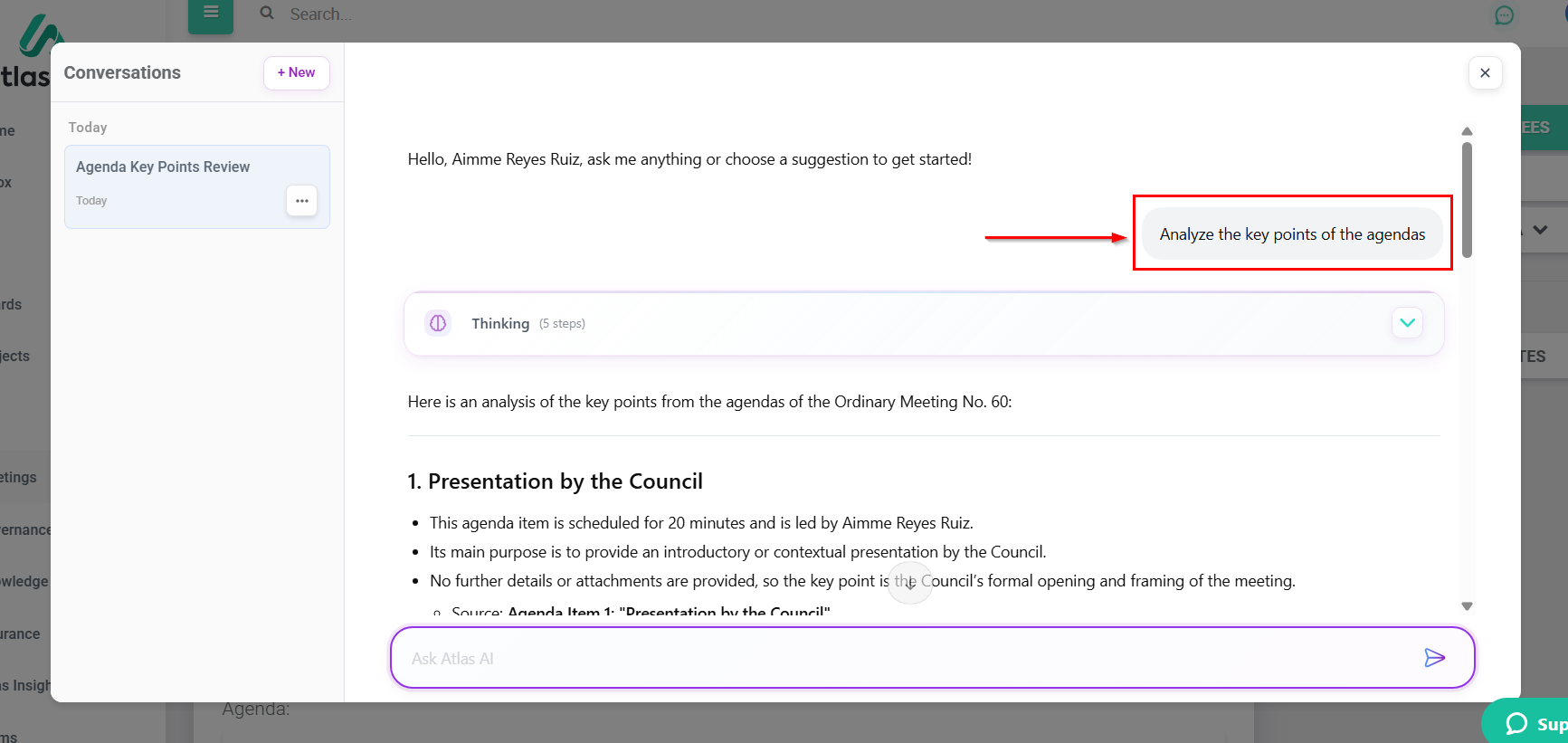 Atlas Insights is the artificial intelligence tool of the Atlas Governance platform. It was developed to assist board members, committee members, and governance teams in interpreting documents, identifying risks, generating summaries, and supporting decision-making with greater speed and security.