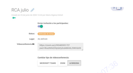 After the creation has been completed, the meeting with the Zoom option enabled will display a link available to all attendees of the videoconference;