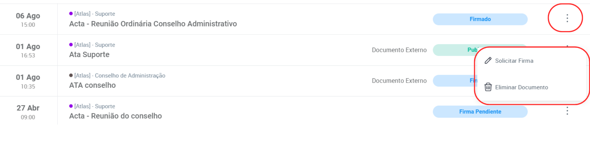 En la pestaña "Historial de Documentos", puedes realizar diversas acciones relacionadas con las actas y documentos. A continuación, te explico cada una de las opciones disponibles al hacer clic en los tres puntos junto a un documento: