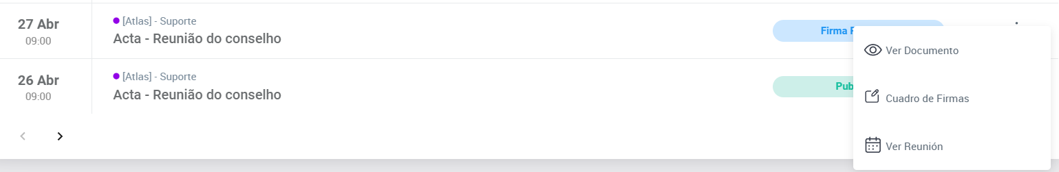 - Ver Reunión: Permite acceder a los detalles de la reunión en la que se discutió el acta.
