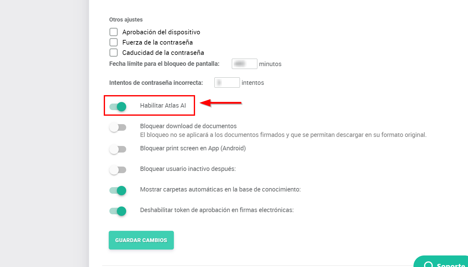 - Active la opción “Habilitar Atlas AI”.