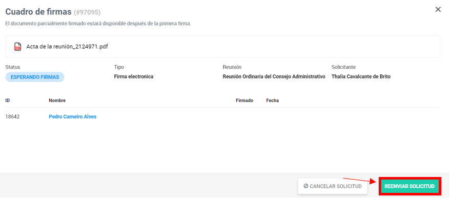 Después de la creación y envío de una firma, si los destinatarios no la han recibido, es posible reenviarla. Para ello, sigue los siguientes pasos: