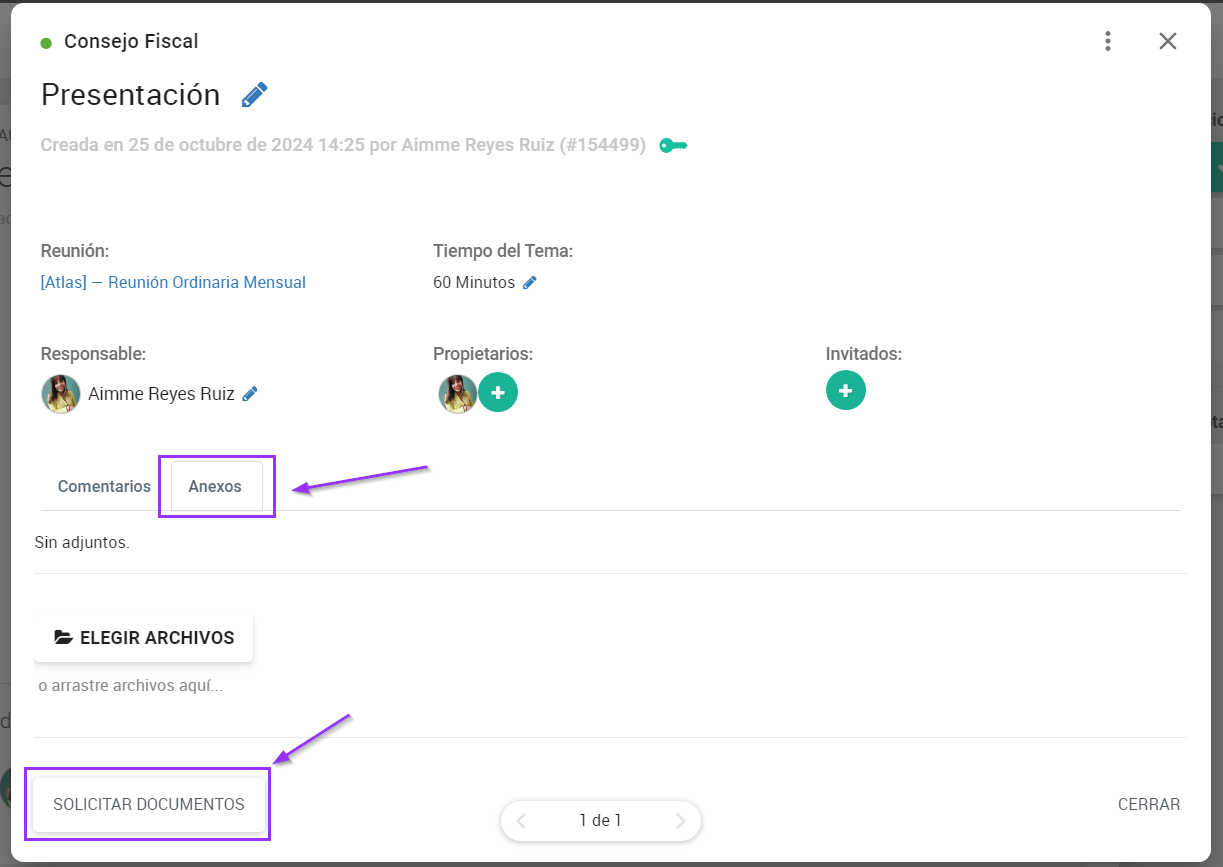 ¡NOVEDAD! Para garantizar una mayor seguridad y conformidad en el envio de los anexos directamente al portal, ahora es posible solicitar la adición de archivos dentro del item del orden del dia a invitados de la reunión. Para eso, haga lo siguiente: