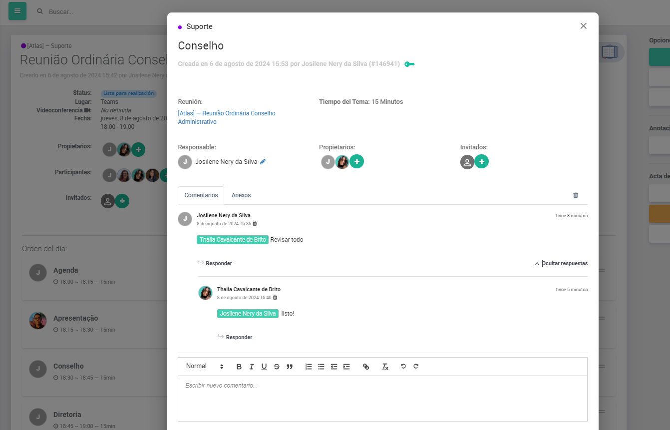 Novedad: Los comentarios de los temas ahora están incluidos dentro del bluebook con fecha y hora: