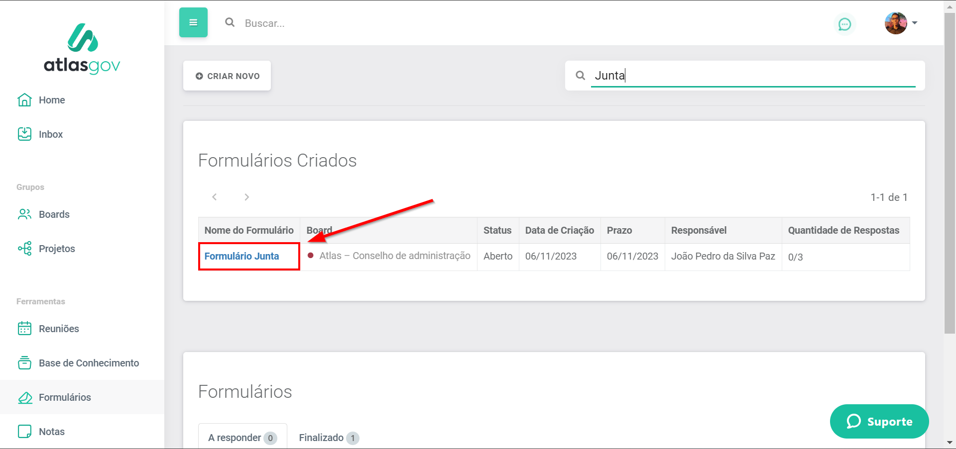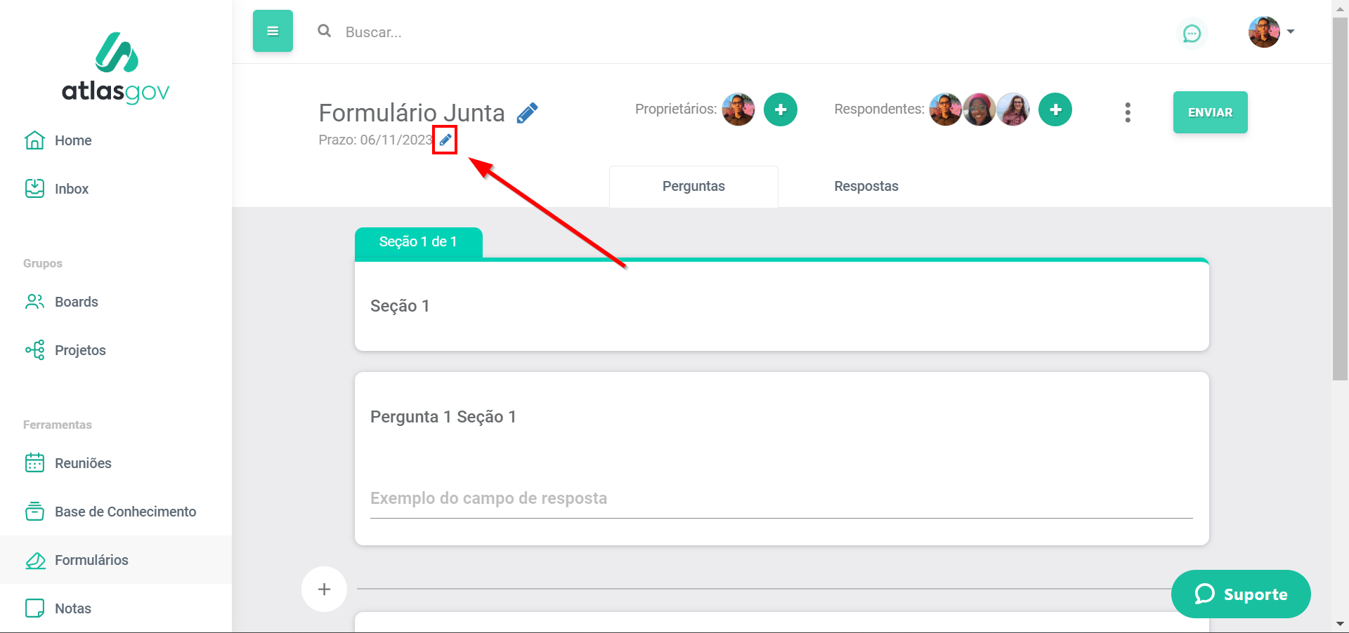 1. Acesse o "Formulário" no qual deseja alterar o prazo;