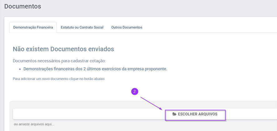 2.Clique em “Escolher arquivo” na aba “Demonstração financeira”.