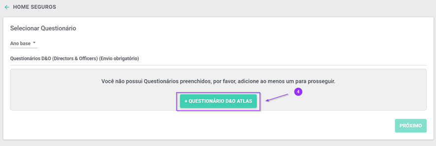 4.Escolha “+Questionário D&O Atlas”;