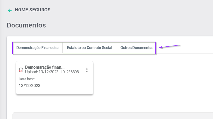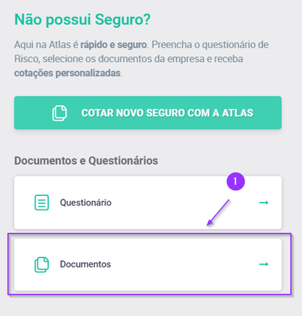 1.Dentro da aba de seguros, selecione “Documentos”.