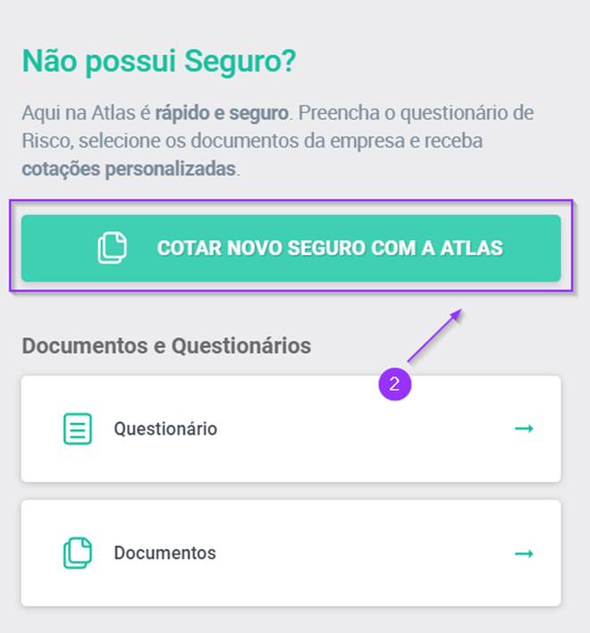 2.Selecione “Cotar novo seguro com a Atlas”;