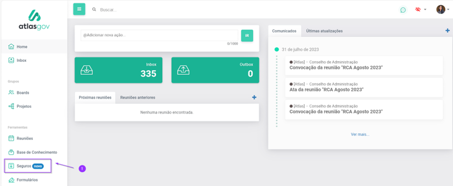 1.Acesse a opção “Seguros” no menu do lado esquerdo;