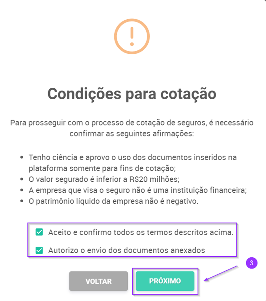3.Confirme os termos e condições e clique em “Próximo”;