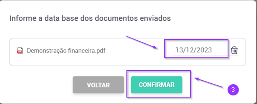 3.Defina a data base e clique em “Confirmar”.